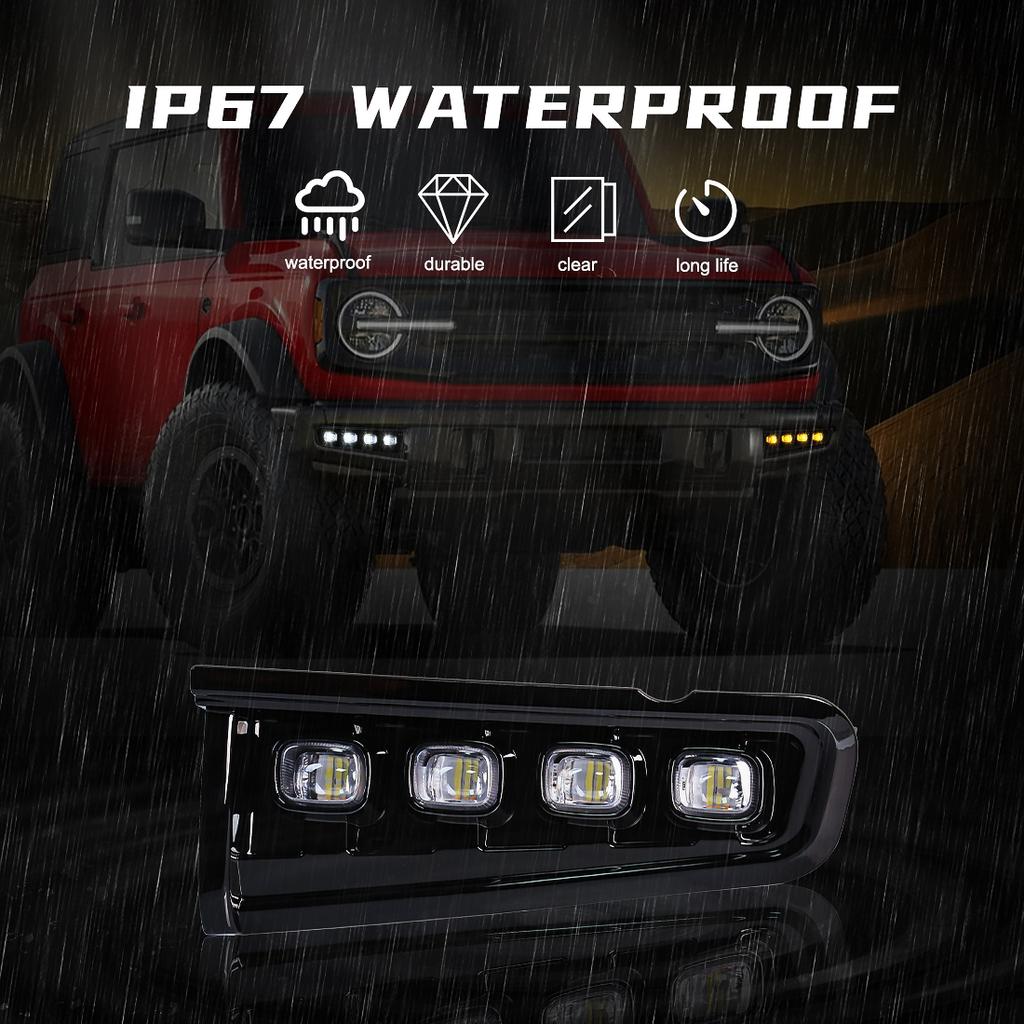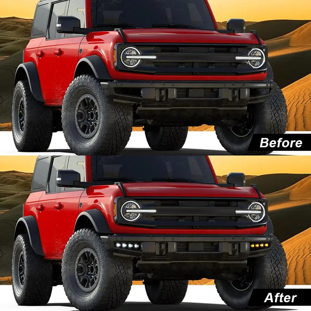 Светодиодные ДХО для Ford Bronco 2021 2022 2023 Дневные ходовые огни Противотуманные фары Передний бампер Фары указатели поворота Автомобильные аксессуары 12 В
