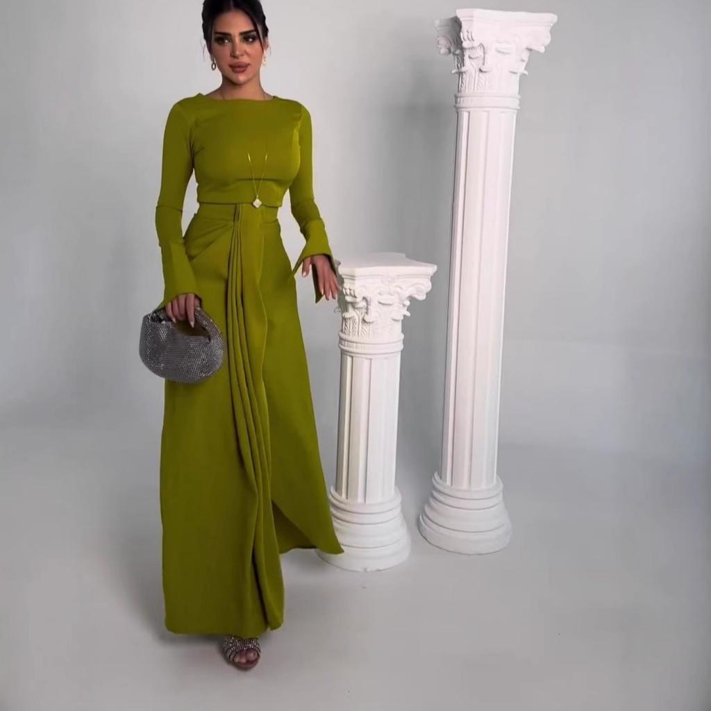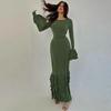 2025 осень и зима новая женская одежда сексуальное платье с длинными рукавами и разрезом комплект из двух частей