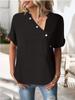 Украсьте свой гардероб этим шикарным женским топом, созданным для сезона весна/лето 2023 года.. Изделие изготовлено из высококачественного хлопка, обеспечивает удобную посадку и воздухопроницаемость.. Сплошной узор добавляет нотку изысканности, а уникальная деталь в виде поворотной кнопки подчеркивает элегантность.. Этот топ с привлекательным V-образным вырезом и стильными короткими рукавами гармонично сочетает в себе европейские и американские модные тенденции, что делает его универсальным дополнением к любому современному гардеробу.. Идеально подходит как для повседневных выходов, так и для более торжественных случаев и станет яркой деталью вашей сезонной коллекции.
