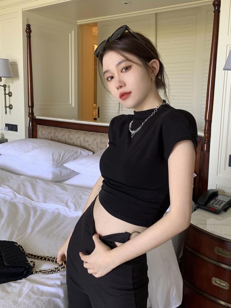 Украсьте свой гардероб этим шикарным и современным топом с короткими рукавами.. Изделие изготовлено из роскошной смеси молочного шелка и искусственного шелка, оно шелковистое на ощупь и удобное по посадке.. Его сдержанный однотонный узор делает его идеальным выбором для создания универсального стиля, позволяя вам без труда сочетать его с различными нарядами.. Изысканный дизайн с полуворотником добавляет элегантности, делая его идеальным как для повседневных, так и для нарядных случаев.