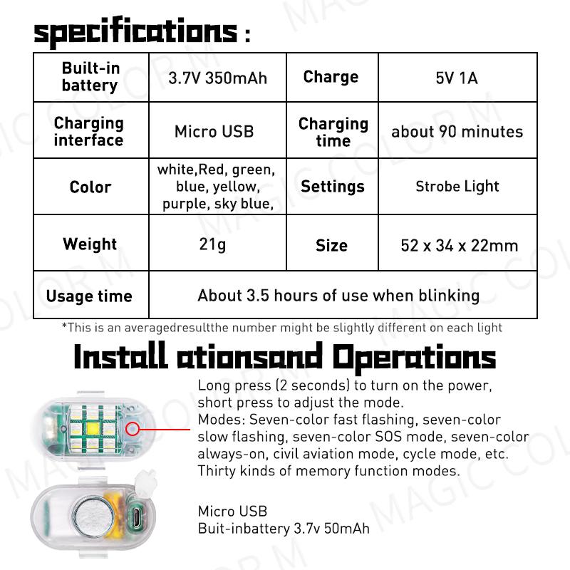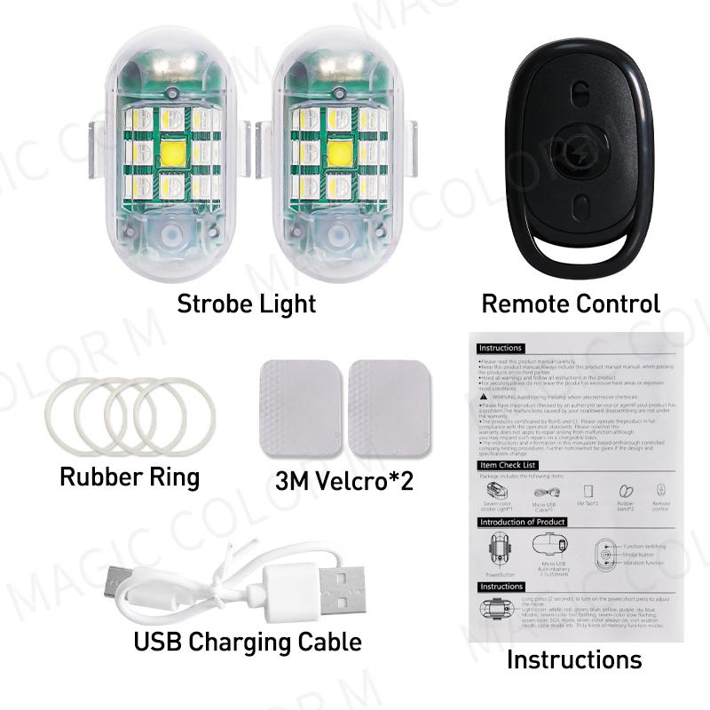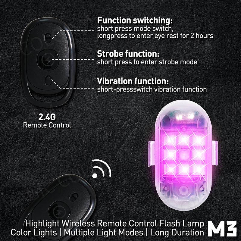 2 шт. беспроводной светодиодный стробоскопический светильник с дистанционным управлением, предупреждающая лампа, вспышка, индикатор, защита от столкновений для автомобиля, мотоцикла, дрона, круиз-контроля