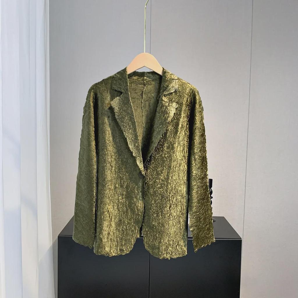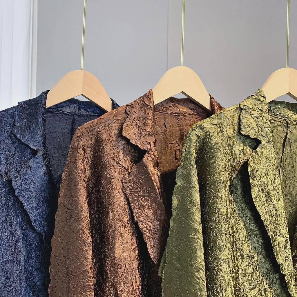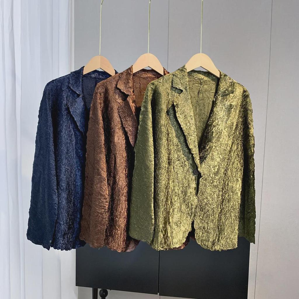 Женский облегающий пиджак с ручной плиссировкой — короткий фасон с длинными рукавами, удобный и универсальный для весны и осени