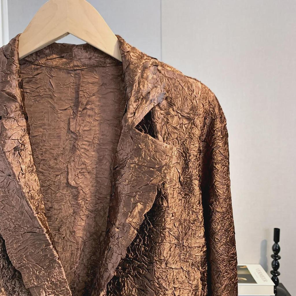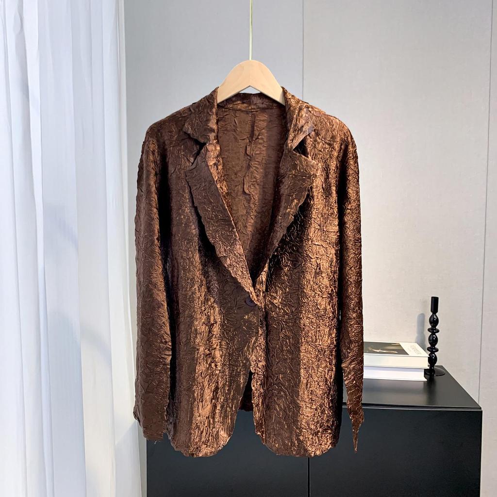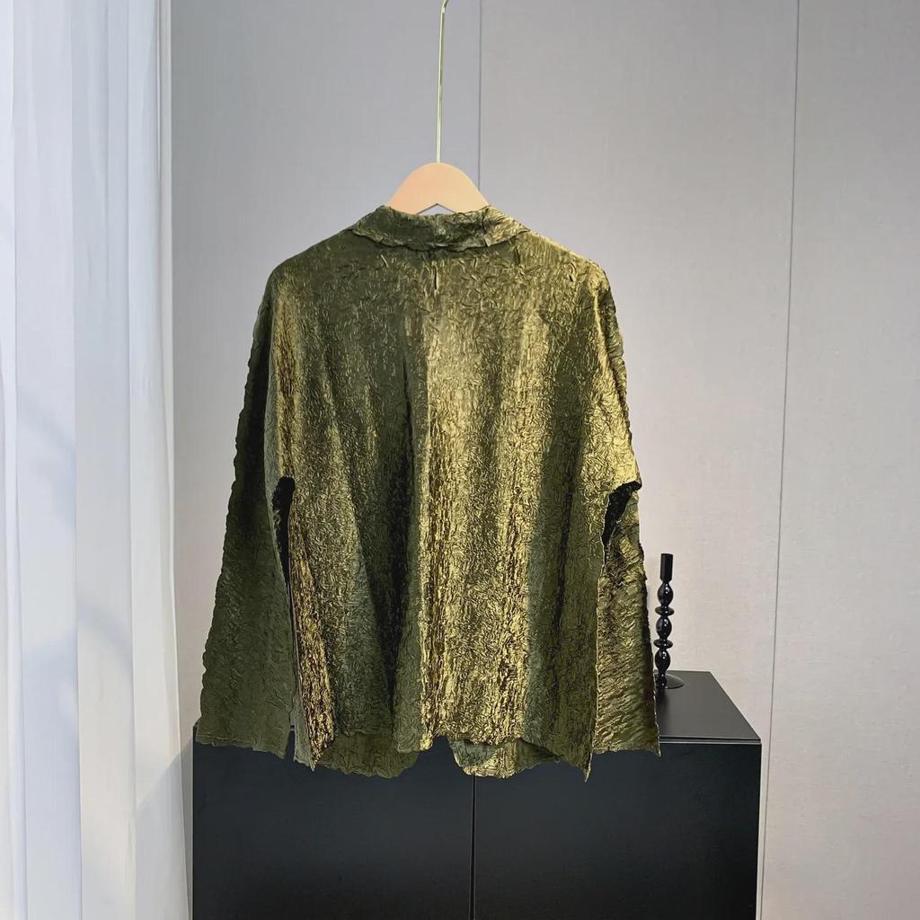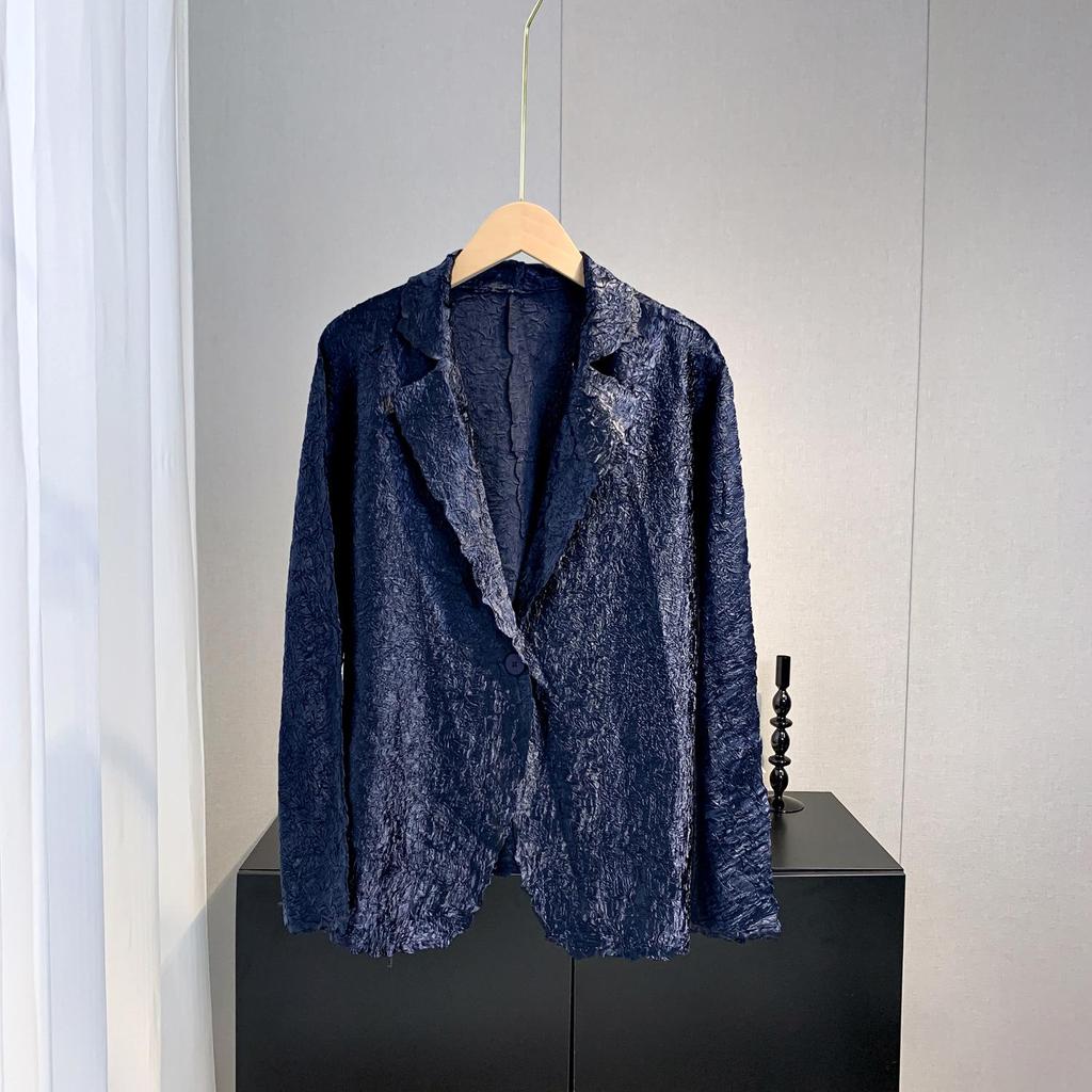 Женский облегающий пиджак с ручной плиссировкой — короткий фасон с длинными рукавами, удобный и универсальный для весны и осени