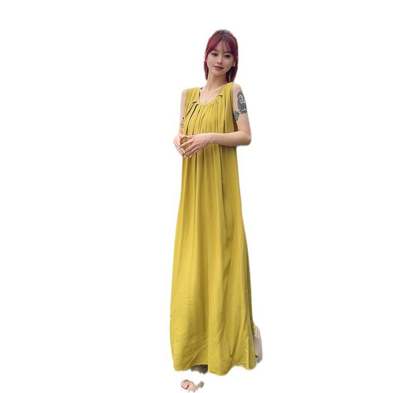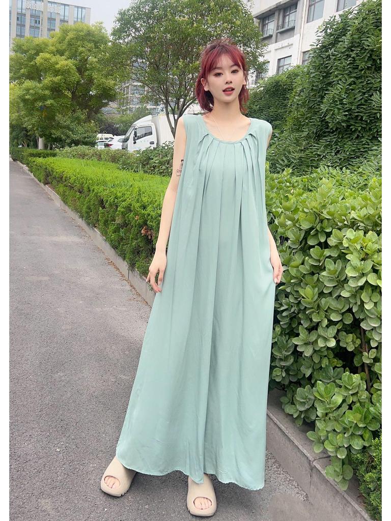 Свободная юбка из хлопкового шелка длиной до щиколотки 2024 года — женское длинное платье-халат для похудения
