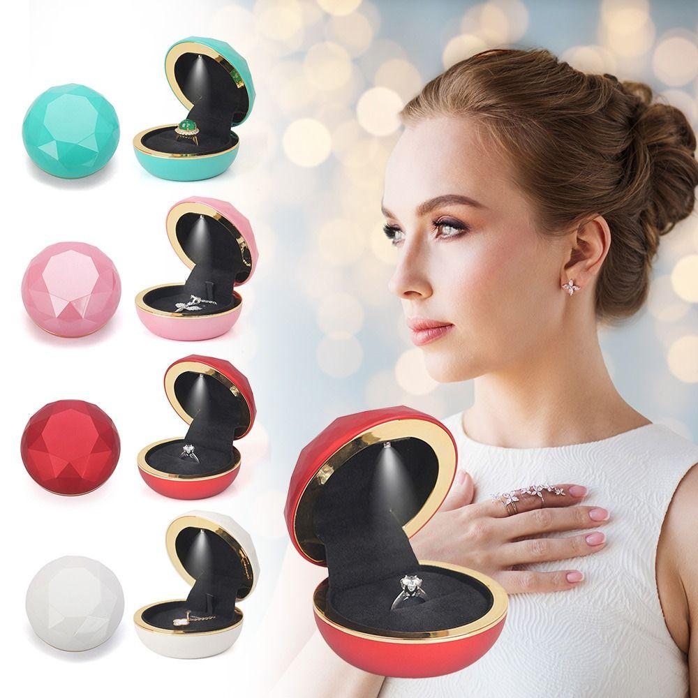 Integrated LED light enhances the sparkle of the ring upon opening.