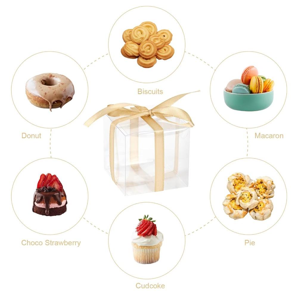 25pcs with Ribbon Gift Packaging Boxes Transparent Dessert Cake Boxes Baby Shower