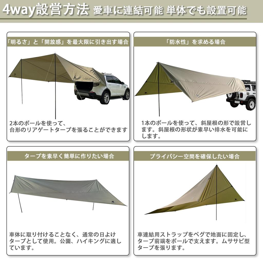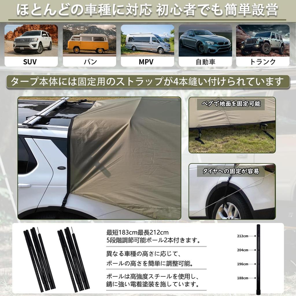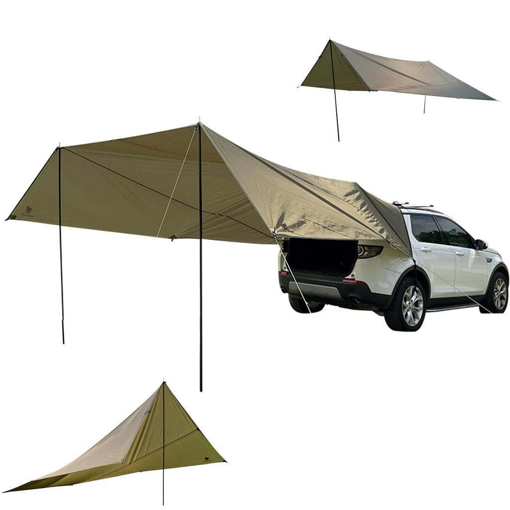 [Geer Top] Автомобильный боковой тент, Тент для задней двери автомобиля, Приблизительно 20 квадратных метров, Легко устанавливается, В комплекте 2 стойки, Темно-зеленый
