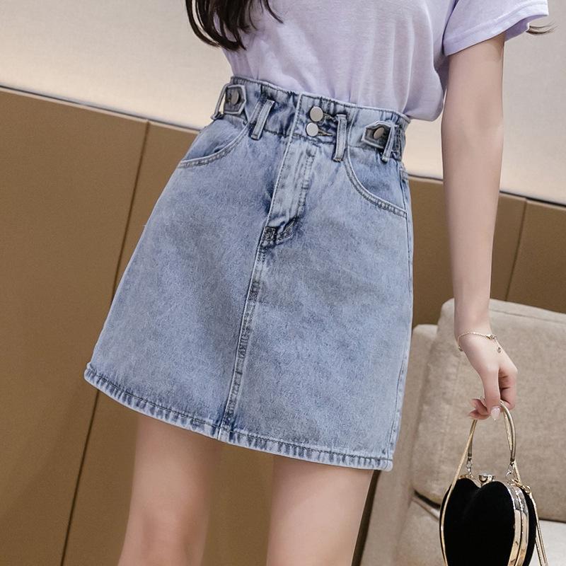 Женская юбка-трапеция из ретро-джинса, лето 2025 г., размер плюс, утягивающий дизайн бедер