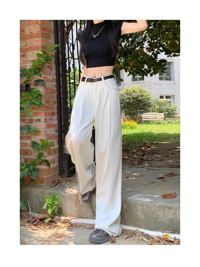 Белые джинсы с высокой талией и широкими штанинами 2023 года — удобные, свободные и модные брюки с драпировкой