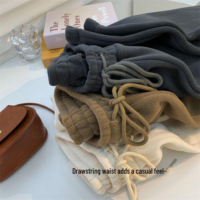 Сохраняйте уют и стиль в холодные месяцы с этими двухсторонними спортивными штанами из флиса для женщин.. Эти утолщенные, свободные леггинсы, изготовленные из высококачественного полиэстера, обеспечивают исключительное тепло и комфорт, что делает их идеальными для ношения осенью и зимой.. Материал обеспечивает прочность и мягкость на ощупь, а современный дизайн обеспечивает свободную посадку для удобства движений.. Эти спортивные штаны идеально подходят как для повседневных прогулок, так и для отдыха дома. Они незаменимы для сохранения тепла и создания стильного образа.
