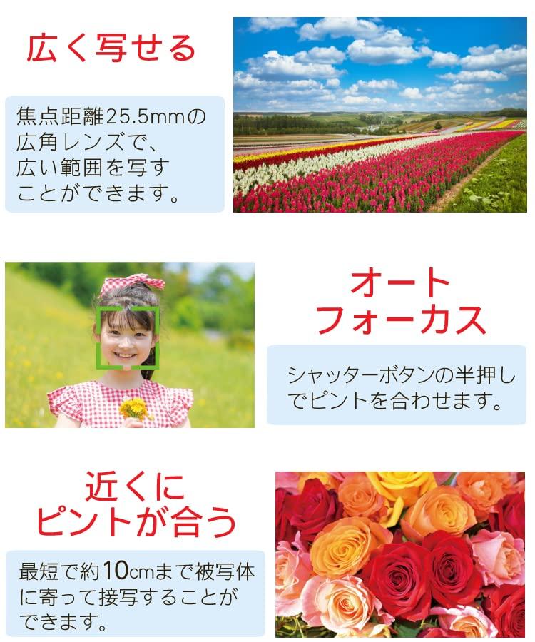 Это легкая и компактная 8-мегапиксельная цифровая камера, которую вы всегда можете носить с собой в кармане и с легкостью фотографировать повседневные пейзажи.. Широкоугольный объектив с фокусным расстоянием 25,5 мм (35-мм эквивалент) позволяет делать широкий спектр снимков. Вы можете приблизиться к объекту и сделать снимки крупным планом с расстояния всего 10 см.. Это также многофункциональная камера, которая включает в себя функцию съемки с задержкой, функцию обнаружения движения и замедленную съемку.. Ее также можно использовать как веб-камеру, подключив к ПК.