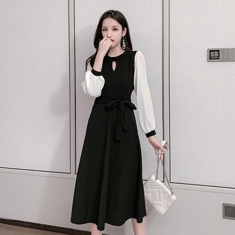 Осень 2024 Женское облегающее платье миди с длинным рукавом, больших размеров, маленькое черное платье, корейский стиль, элегантный дизайн