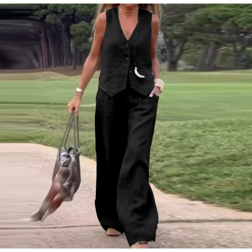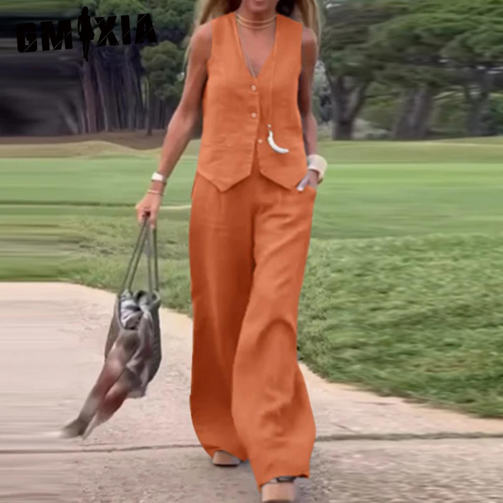 GMXIA Повседневный и модный однотонный комплект из жилета и длинных брюк, комплект из двух предметов в стиле коллаж и пэчворк