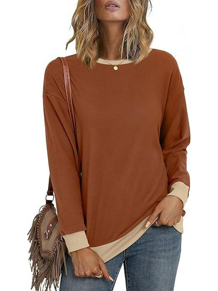 Этот стильный женский свитер идеально подойдет для осени благодаря своему непринужденному и удобному дизайну.. Изготовлен из высококачественного полиэстера, имеет круглый вырез и длинные рукава, что обеспечивает тепло и гибкость.. Свободный крой добавляет изделию непринужденной привлекательности, а привлекающий внимание рисунок с цветными блоками подчеркивает его современный вид.. Этот пуловер, украшенный лоскутными и стегаными украшениями, гармонично сочетает в себе стиль и комфорт, что делает его идеальным выбором для повседневной носки.