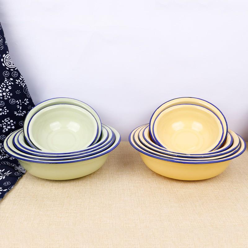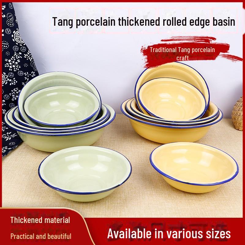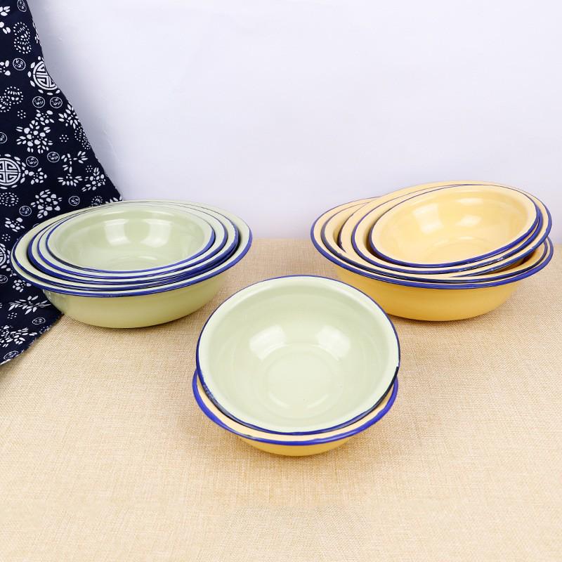 Ностальгическая эмалированная миска для макания с закругленным краем - утолщенная, старомодная столовая посуда для риса/супа/смешивания