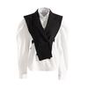 Весенний комплект из корейской тонкой белой рубашки с рукавами-фонариками и жилета на талии 2025 года