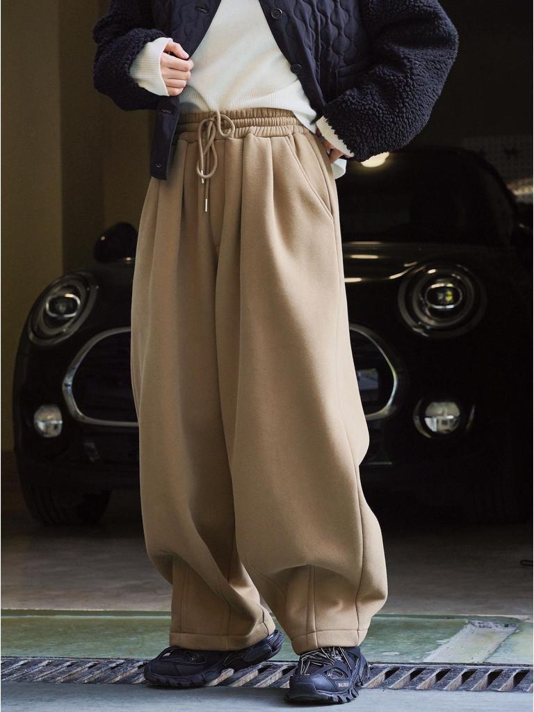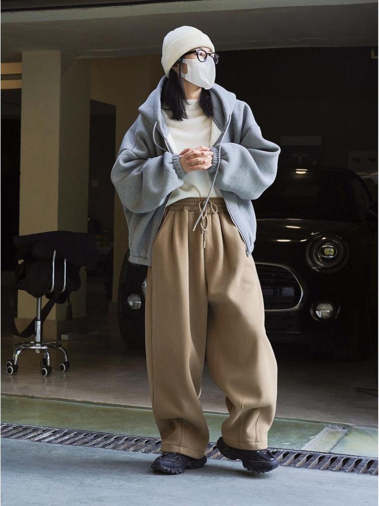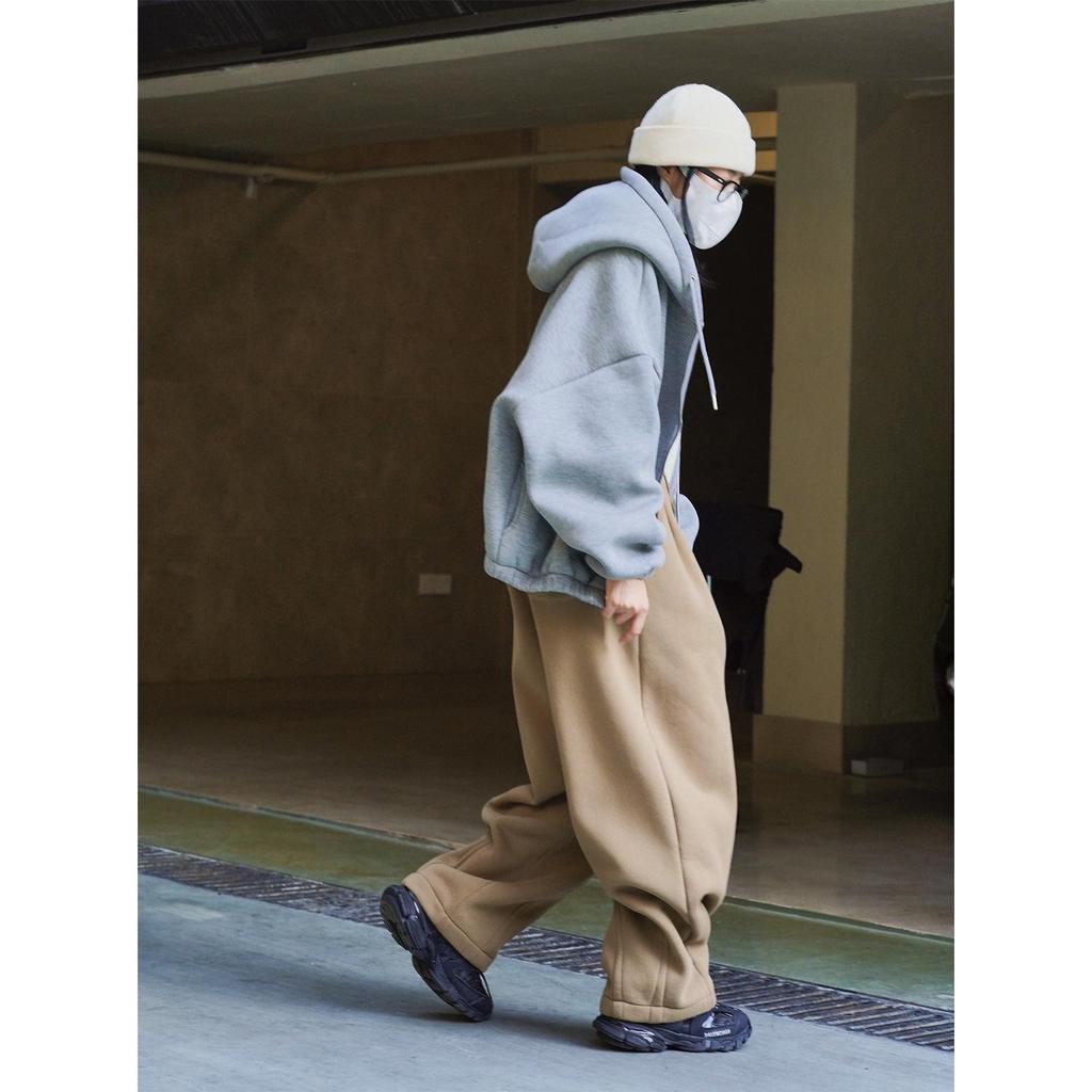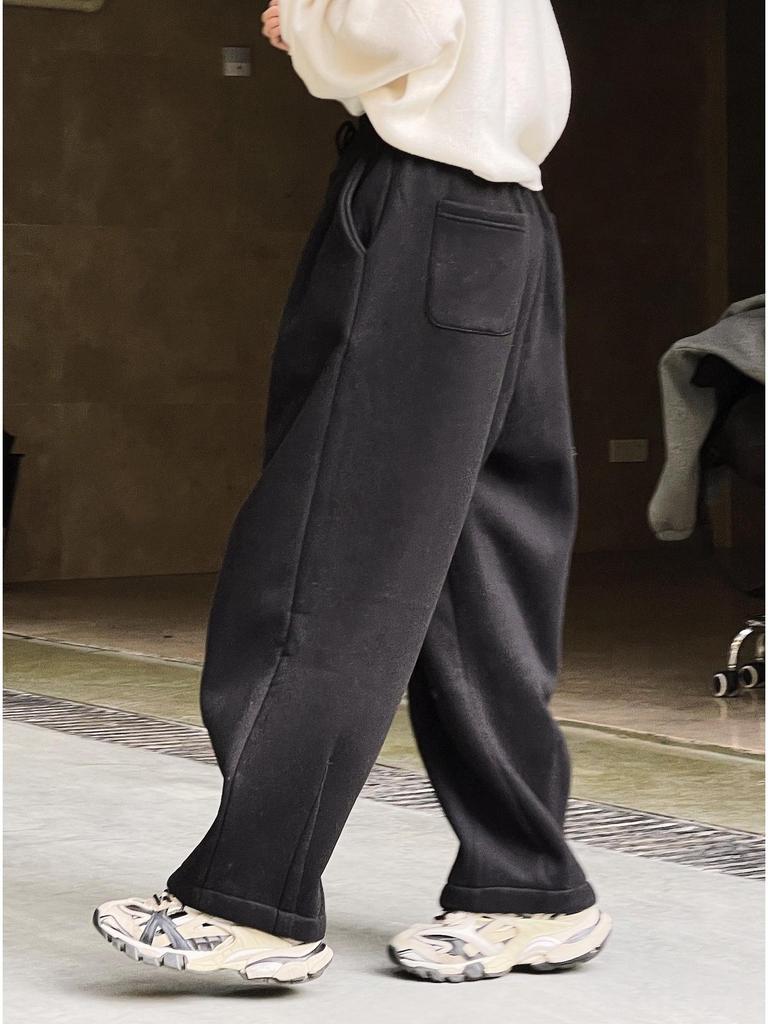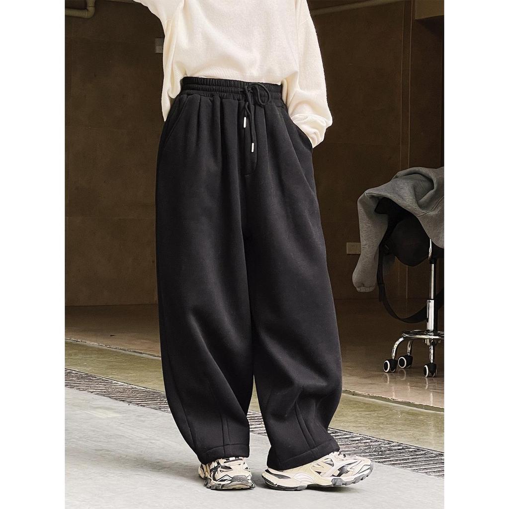 Женские зимние повседневные свободные спортивные штаны в корейском стиле с эластичным поясом, деконструированным дизайном и бархатной подкладкой