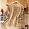 Женская рубашка в стиле ретро из хлопка и льна с вышитыми рукавами-фонариками (Весна/Лето 2024)