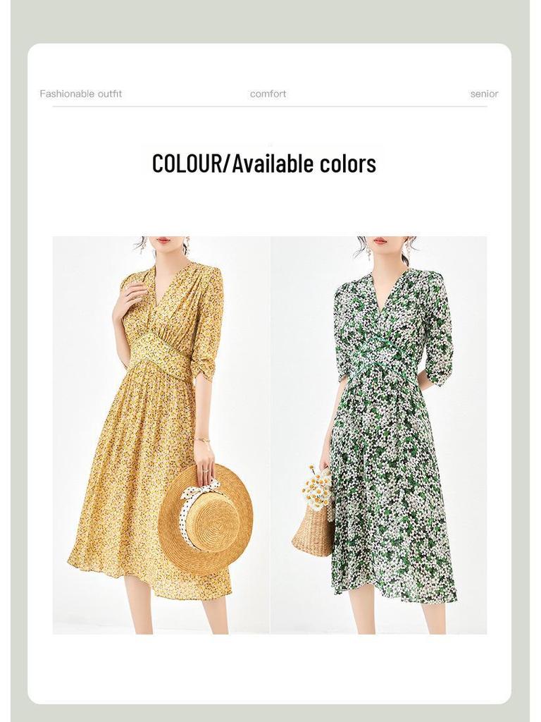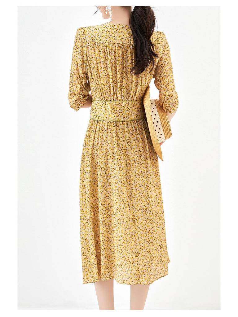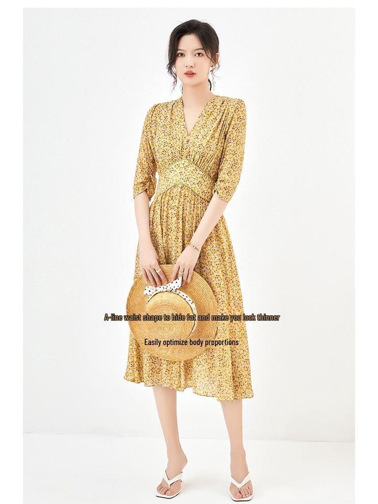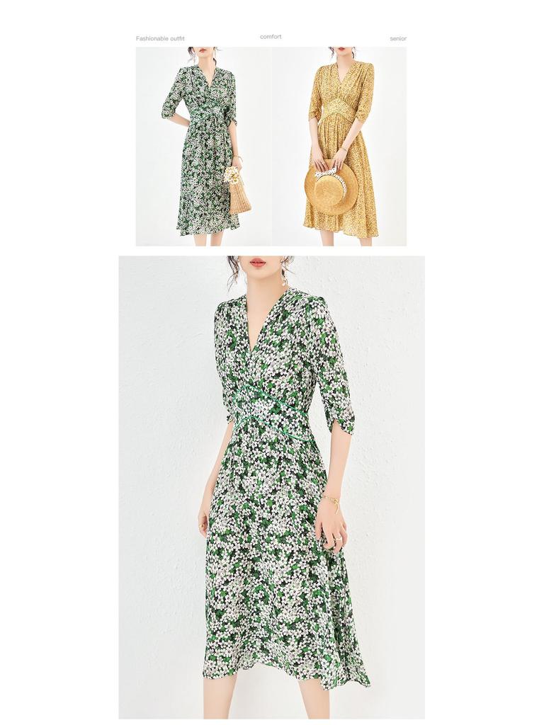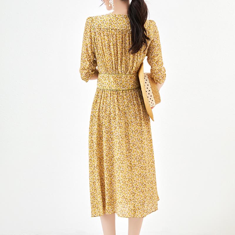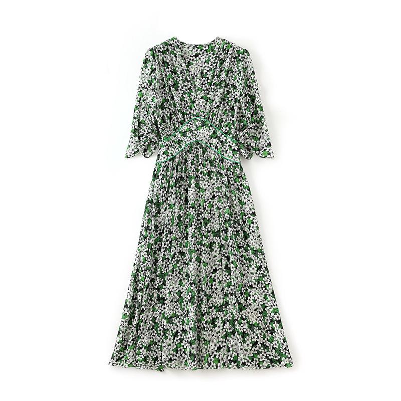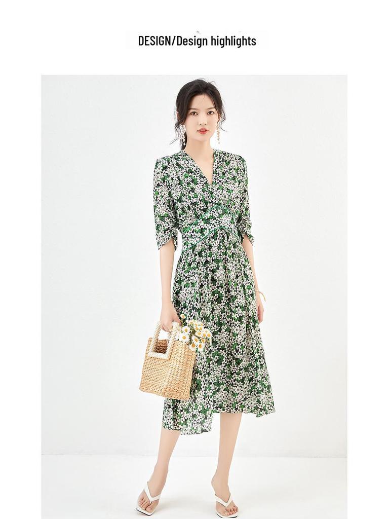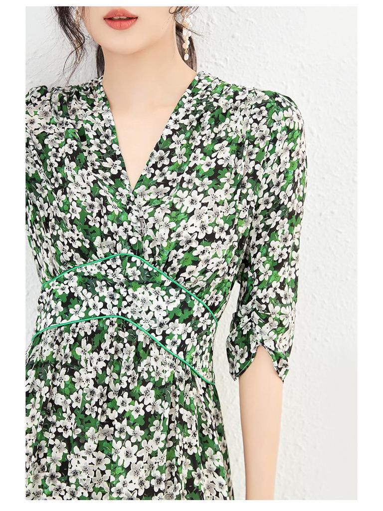 Платье с зауженной талией и цветочным принтом во французском стиле из плотного шелка Mulberry