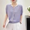 Новый стильный полосатый кардиган с V-образным вырезом - большой размер, свободный вязаный свитер с короткими рукавами