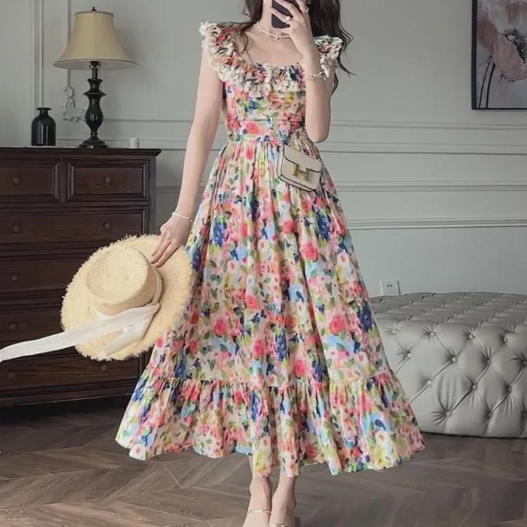 Платье заказывала без единого отзыва и таблицы размеров, наугад. Понравилось на фото. Ткань полиэстер совсем другой расцветки. Если на фото просматриваются маленькие розы, то в реальности разноцветные мазки, напоминающие цветы. На 48- 50 размер платье большое в верхней части. Под грудью отрезное, по центру небольшая сборка. Ткань двойная.По талии можно вставить резину или ушить. Но длинные лямки с оборкой на хлипкой резине укоротить не просто. На рост 158 длина до середины икры. Юбка в сборку с не широкой оборкой. Прошито платье без торчащих ниток и обработанными швами. На фигуре не сидит изящно. Не так, как на фото, не соответствует дизайнерскому. Общий вид похож на куклу на чайнике. Для себя делаю вывод : сколько заказывала платьев, но ни одно не село красиво или по рамеру, поэтому платье больше заказывать не буду.
