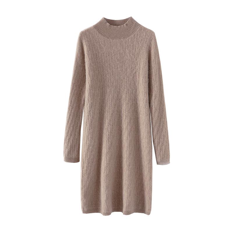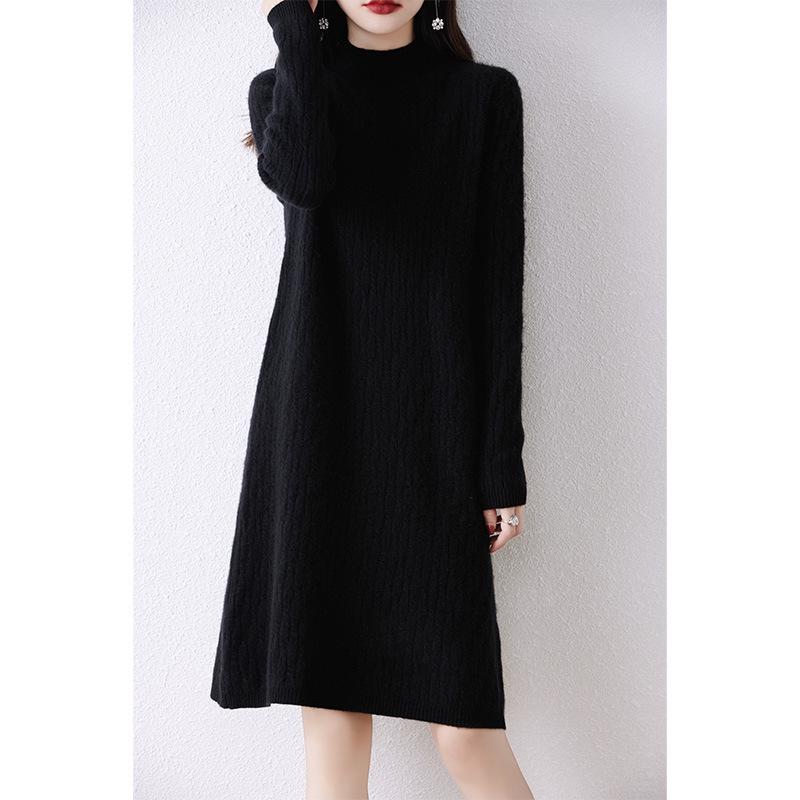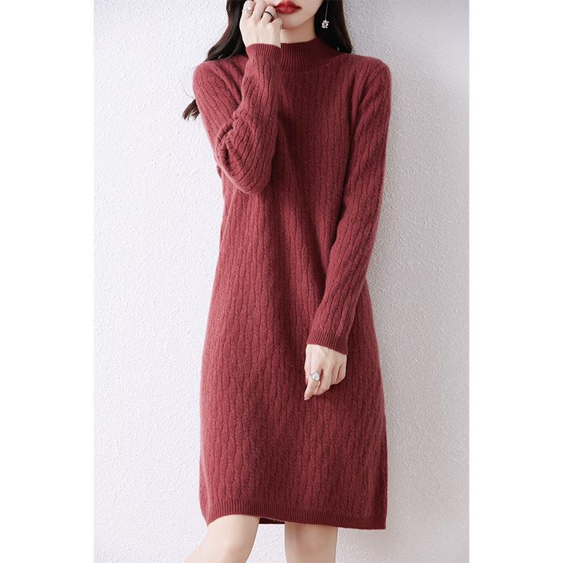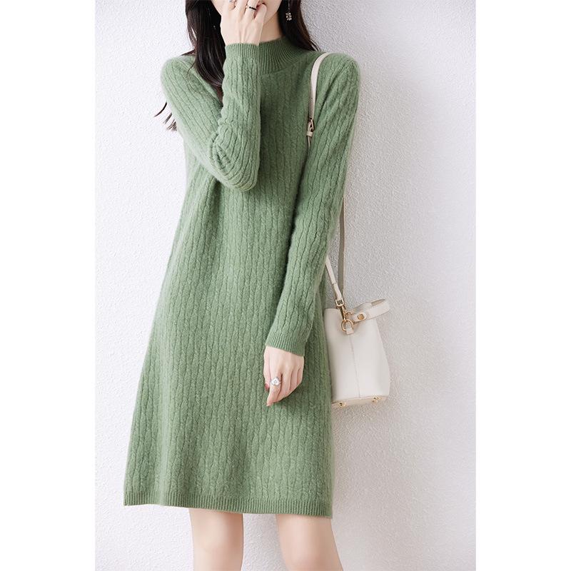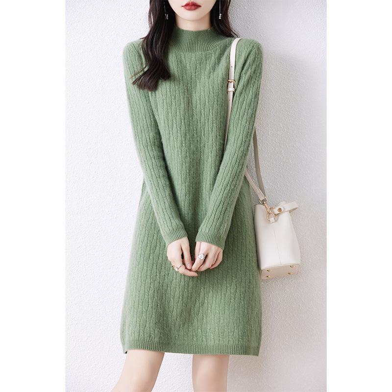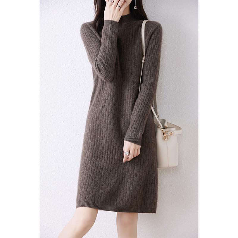 2023 Осень/Зима Женское Свободное Платье-Свитер С Полувысоким Воротником Из Чистой Шерсти Вязание Косами