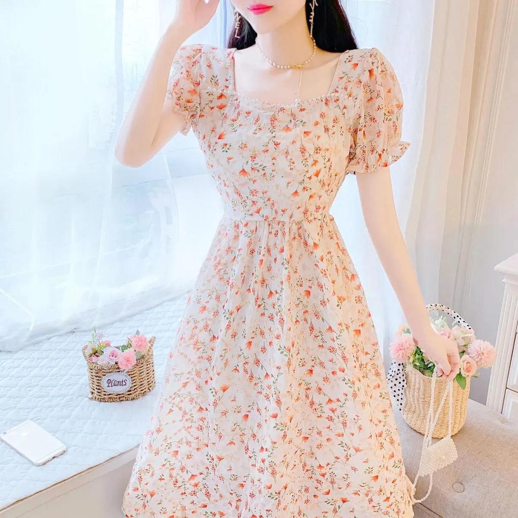 Летнее платье 2024 года во французском стиле с цветочным принтом и рукавами-фонариками — элегантное, стройнящее и молодежное — купить товар онлайн с бесплатной доставкой по всему миру!