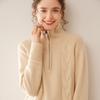 Женский кашемировый кардиган с лацканами, застежкой-молнией и узором в виде перекрученного цветка