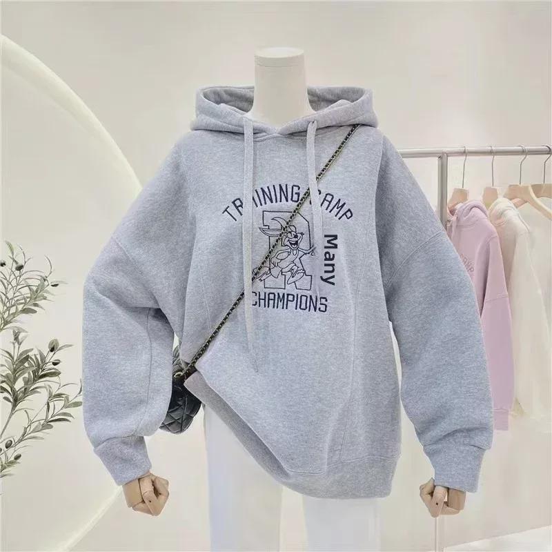 Вышитый цветочный бархатный свитер с капюшоном - женский осенне-зимний дизайн в стиле аниме с мультяшным рисунком