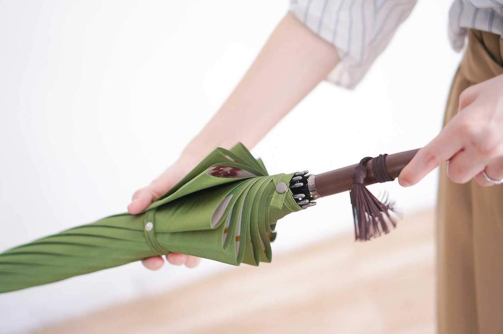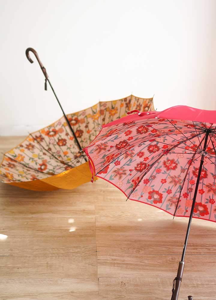 Наслаждайтесь блестящей тканью Кошу-ори и прекрасным натяжением зонта, изготовленного руками мастеров.