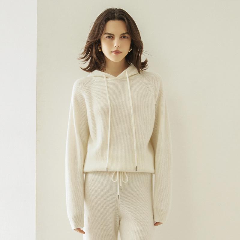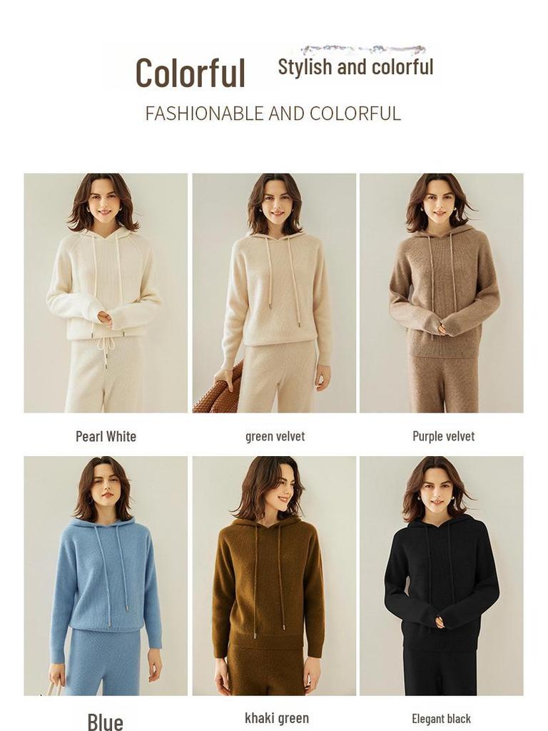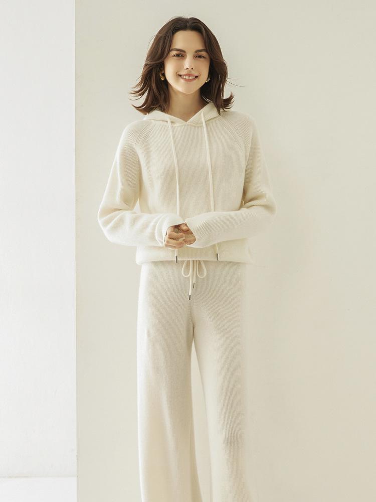 Погрузитесь в атмосферу вечной элегантности с этим модным женским костюмом из кашемирового худи и трикотажных брюк широкого кроя, который идеально подойдет для осени и зимы.. Этот ансамбль, полностью выполненный из роскошного кашемира, призван обеспечить максимальное тепло и комфорт, сохраняя при этом элегантный, повседневный стиль.. Сплошной узор добавляет нотку изысканности, делая его универсальным дополнением к любому гардеробу.. Независимо от того, отдыхаете ли вы дома или выходите на улицу, этот костюм легко сочетает в себе роскошь и непринужденную элегантность.