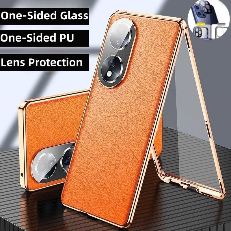 Магнитный чехол для Huawei Nova 12/ 13 Pro/ 12 Ultra, полноразмерная защита корпуса, гибридный кожаный чехол с металлическим бампером и закаленным стеклом, устойчивым к царапинам