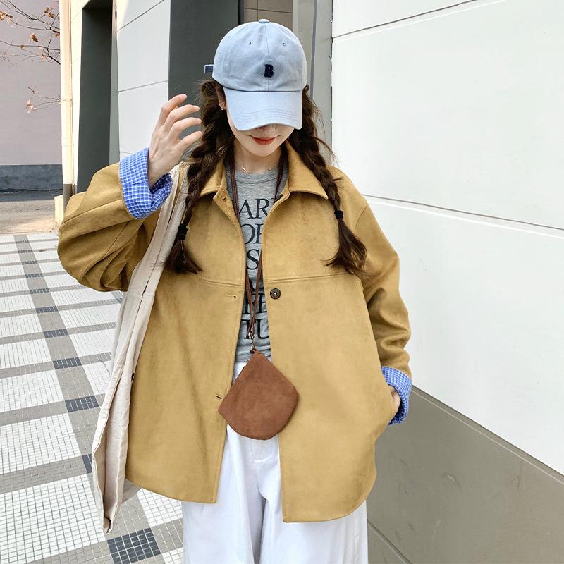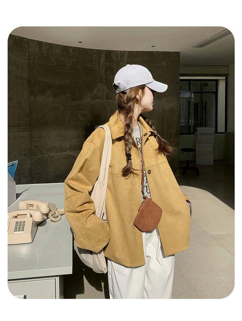 2025 Новая корейская замшевая куртка с лацканами: Шикарный, вневременной, бросающий вызов возрасту стиль.