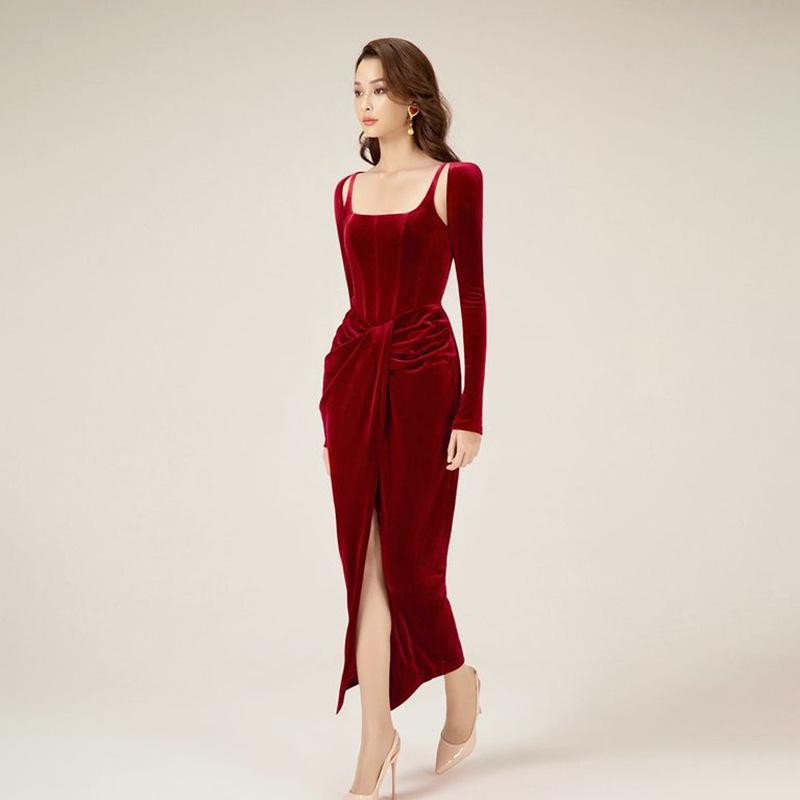 Платье из двух частей из искусственного бархата с переплетением: Весна 2025 г. Утягивающий длинный рукав для женщин