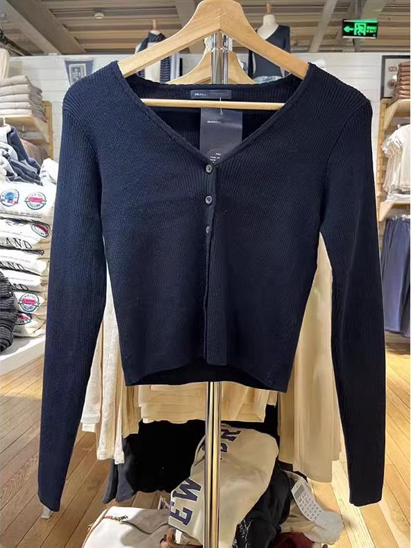 Кардиган в рубчик в стиле ретро темно-синего цвета с кружевным воротником для женщин