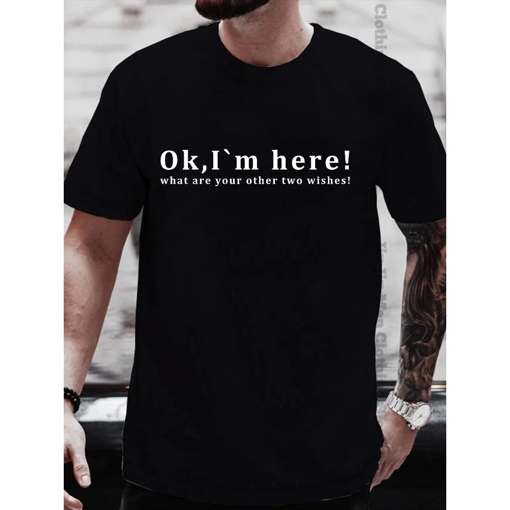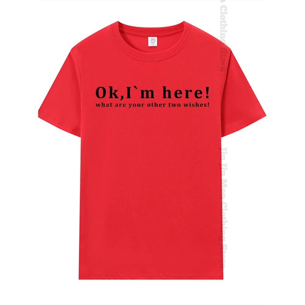 Летняя мужская футболка с надписью «ОК, Я ЗДЕСЬ!» " Повседневная свободная футболка с коротким рукавом унисекс Harajuku футболки большого размера