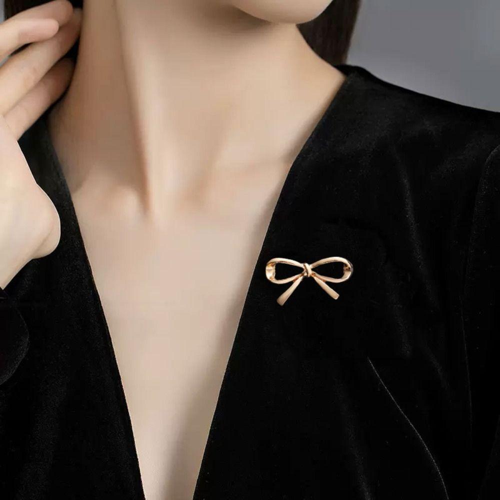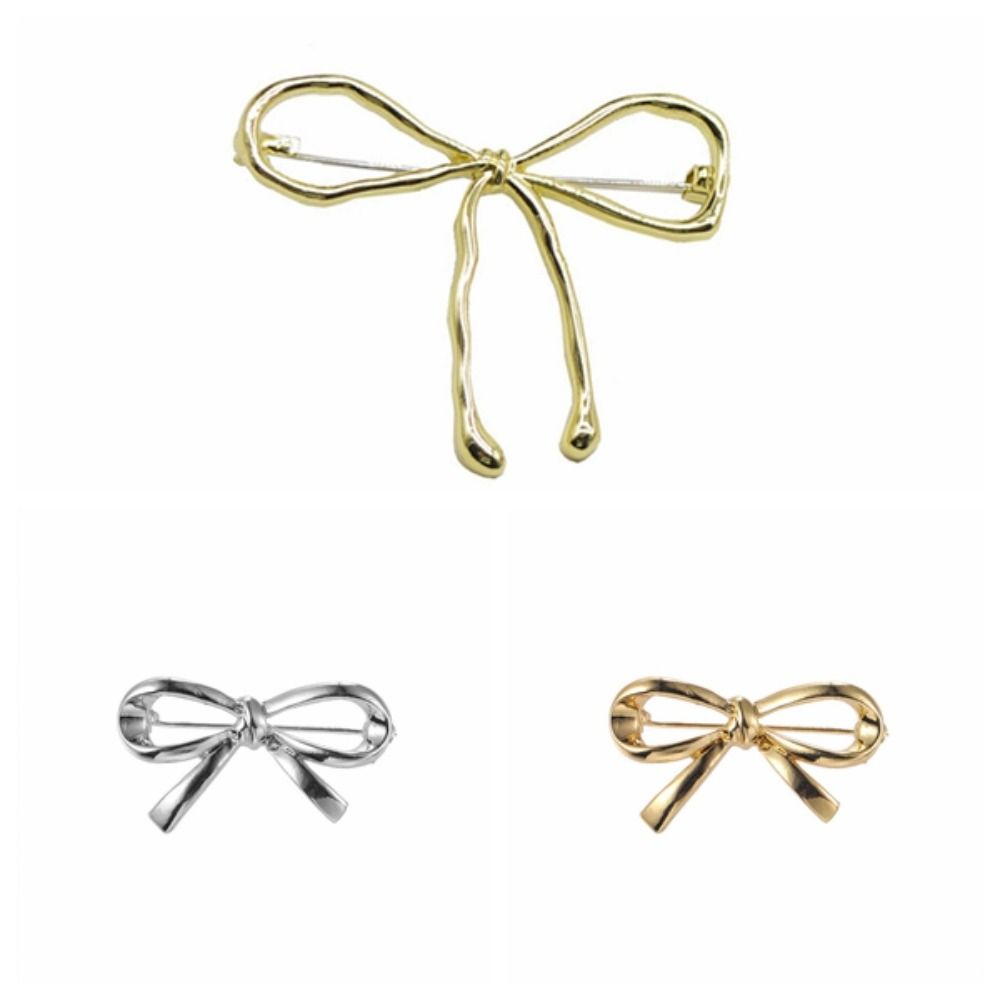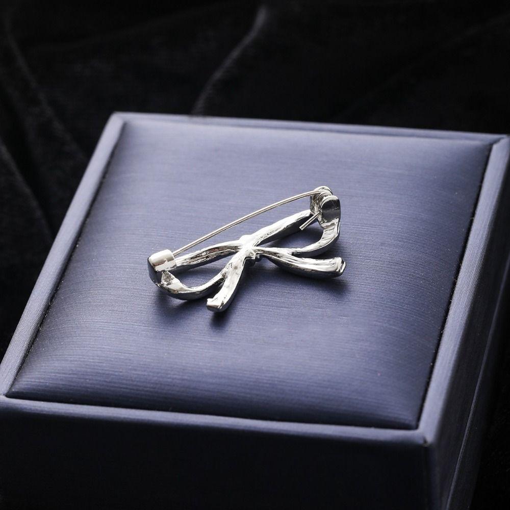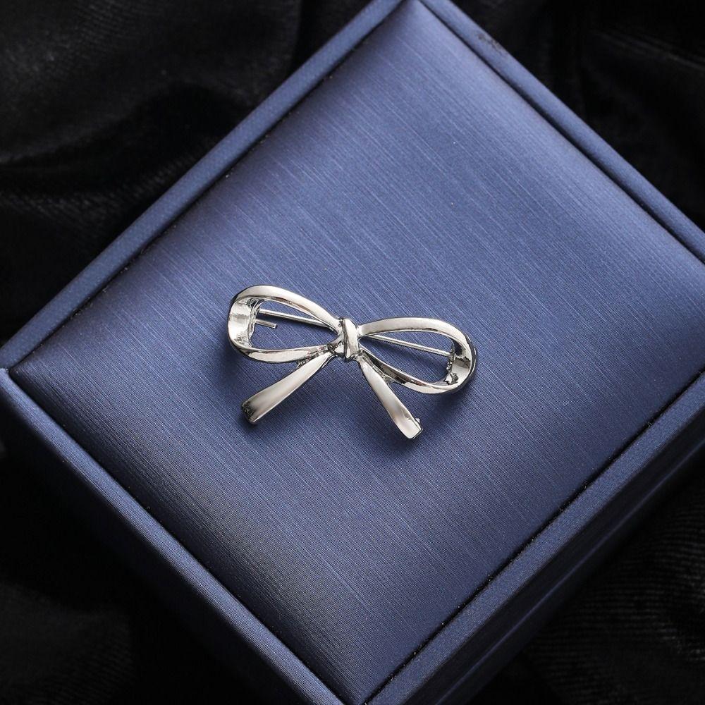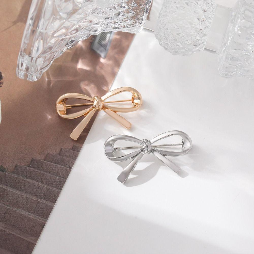 Balletcore Bowknot Brooch Korean Style Anti-Exposure Brooch Temperament Hollow Metal Brooch Women
