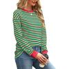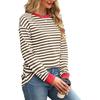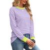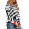 Женская нижняя рубашка осень-зима новая мода контрастного цвета свободный круглый вырез полосатый топ с длинными рукавами