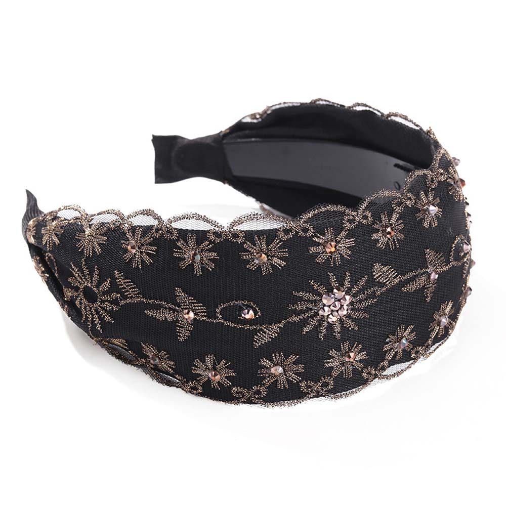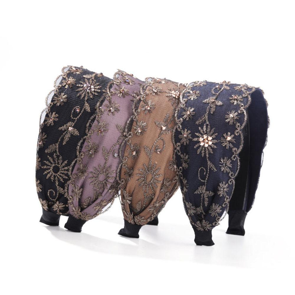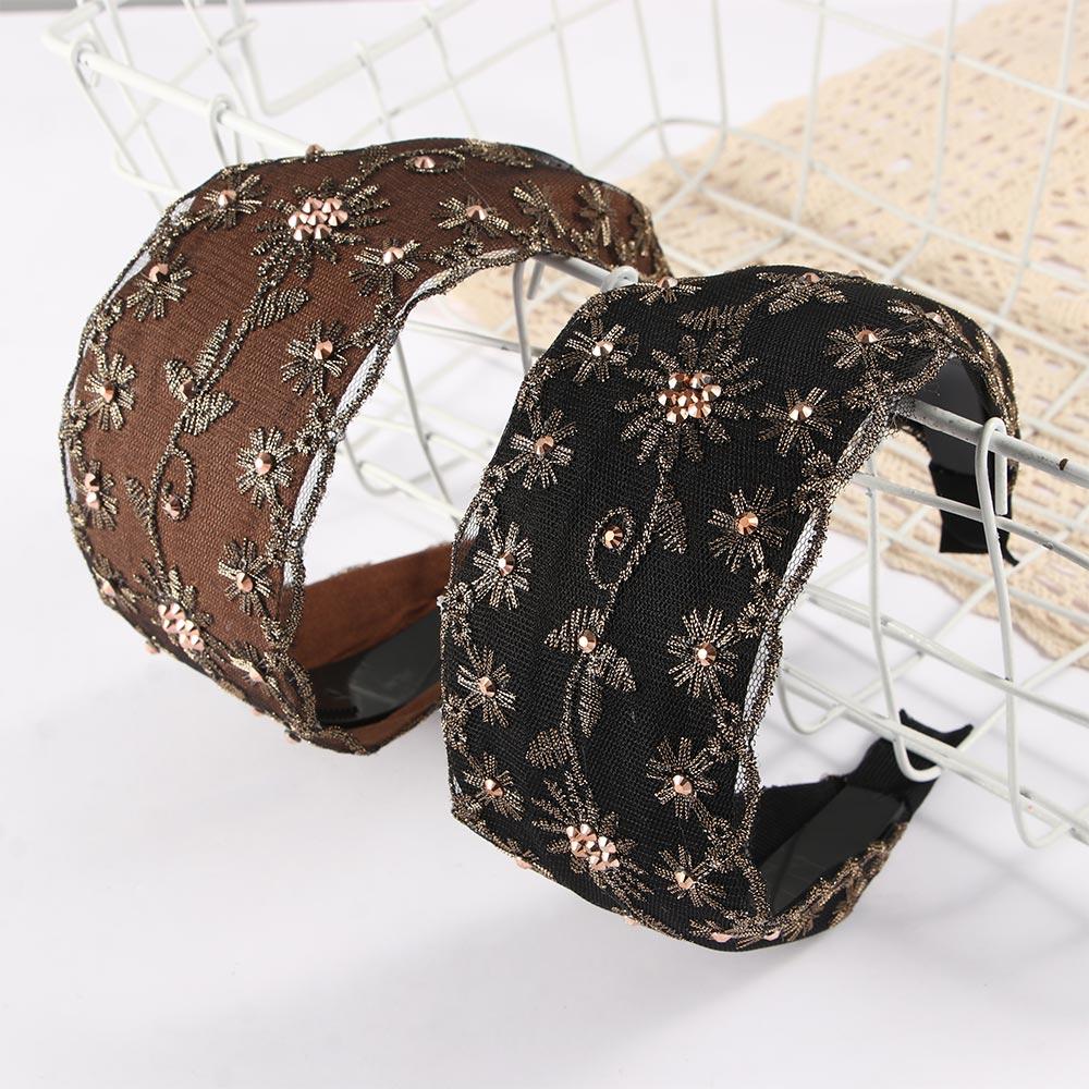 Temperament Lace Korean style Retro Crystal Flower headwear Wide edge headband Embroidery hairband