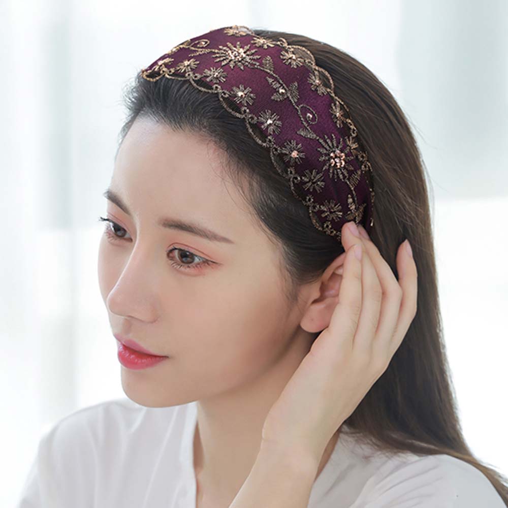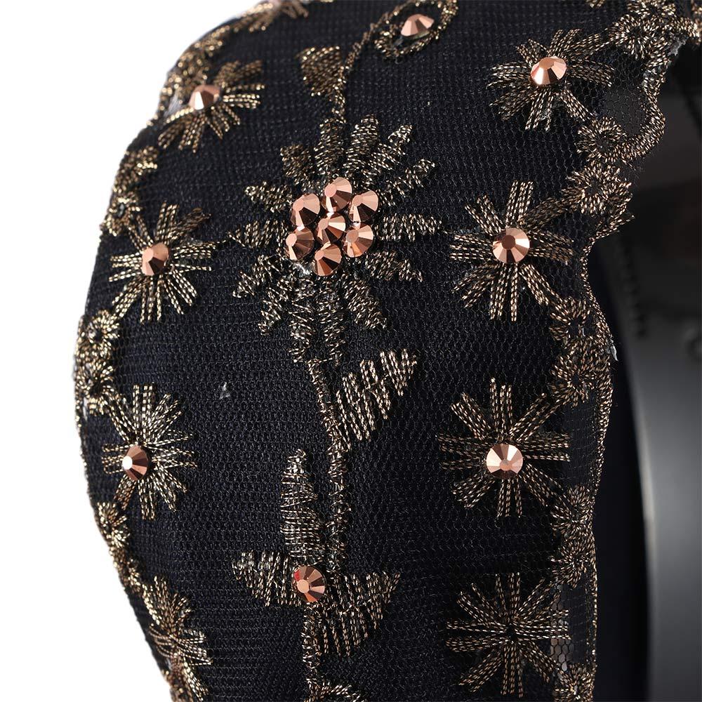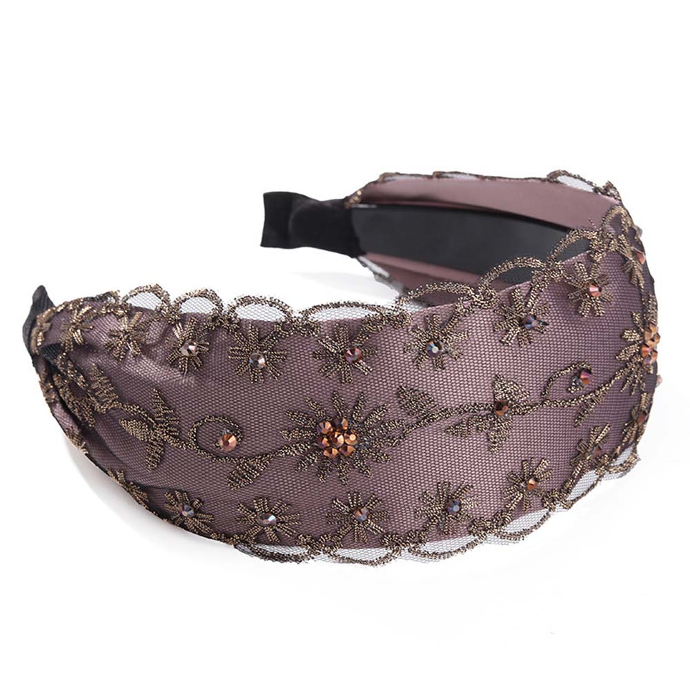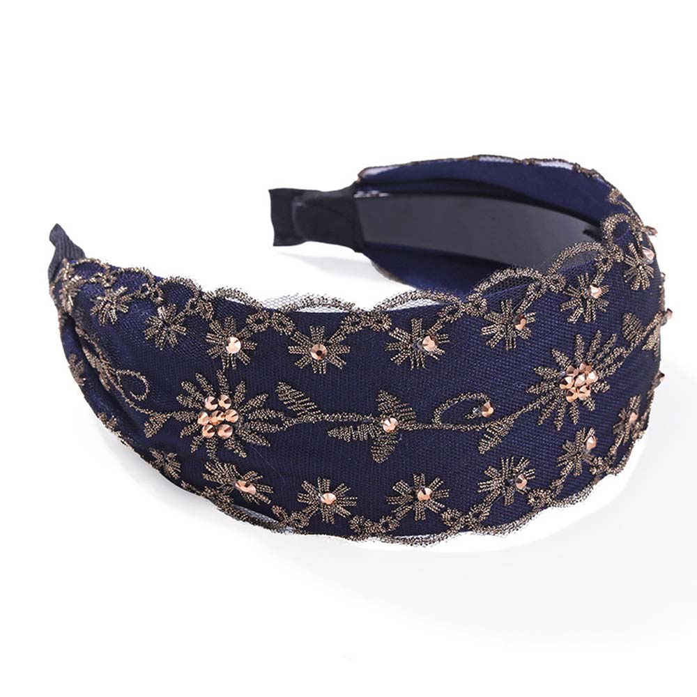 Temperament Lace Korean style Retro Crystal Flower headwear Wide edge headband Embroidery hairband