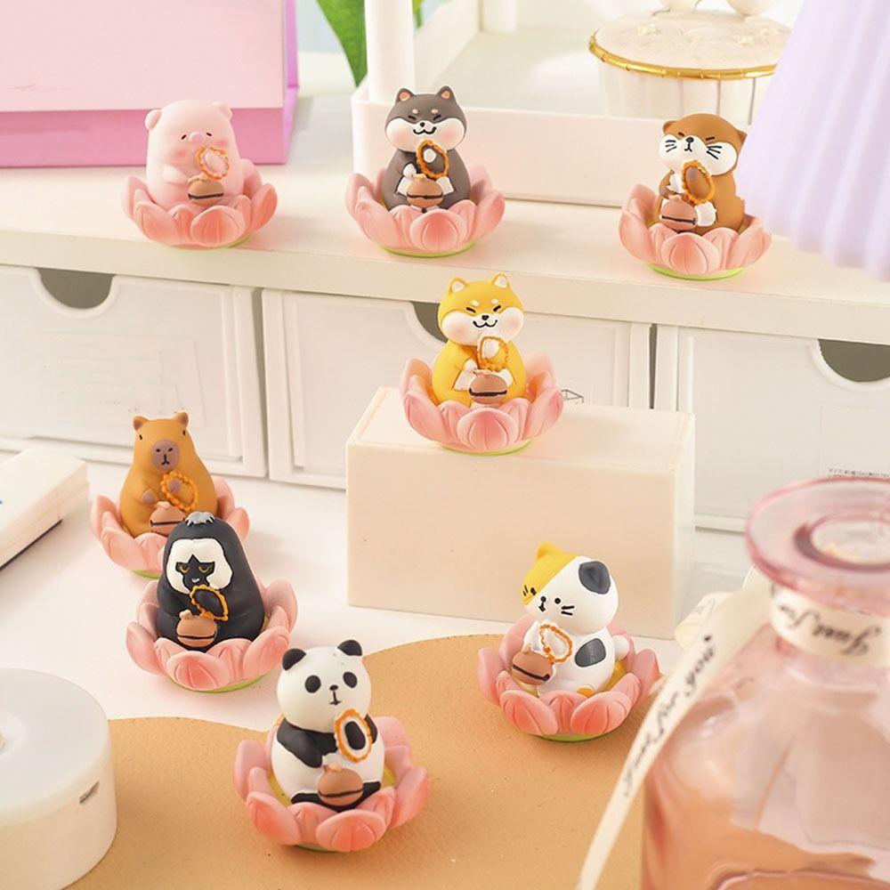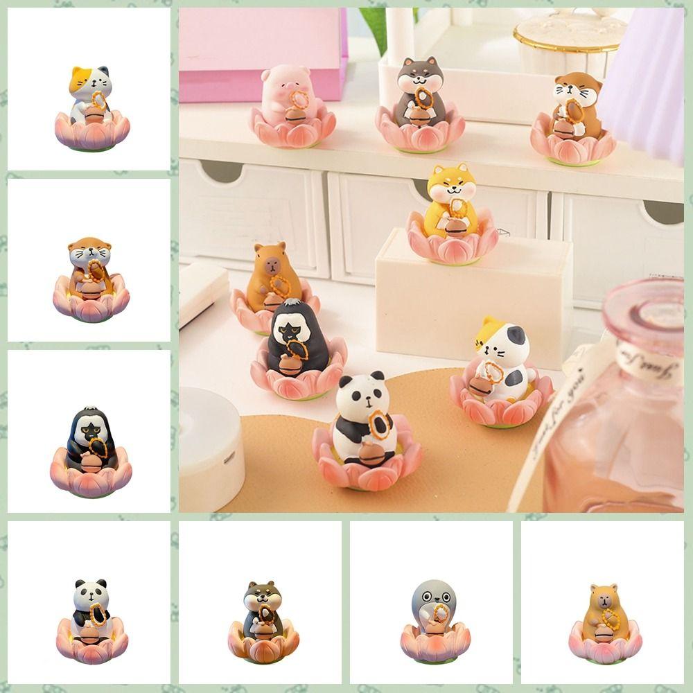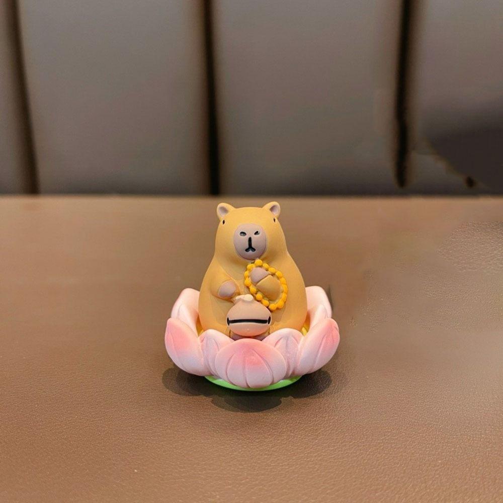Buddha Style Lotus Pig Car Ornaments Resin Capybara Model Figure Good Luck Lotus Ornament Table