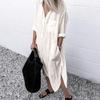 Богемия женское платье-туника на пуговицах с V-образным вырезом и рукавами 3/4 летние повседневные пляжные платья миди