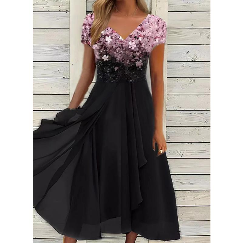Европейская и американская летняя новая женская одежда, повседневное модное платье, шифоновое платье с v-образным вырезом и принтом — купить товар онлайн с бесплатной доставкой по всему миру!