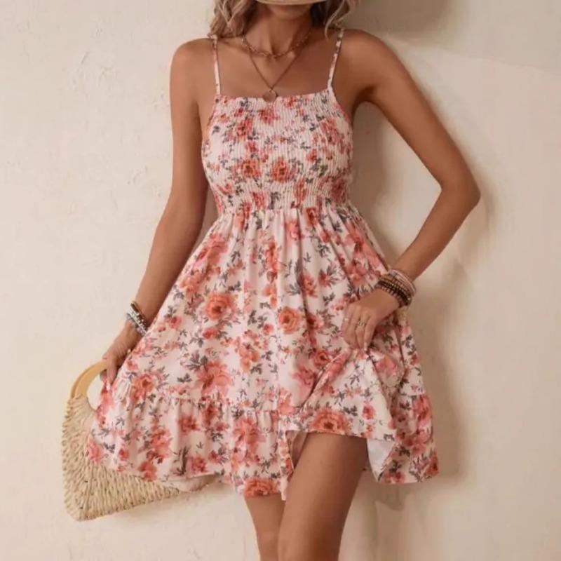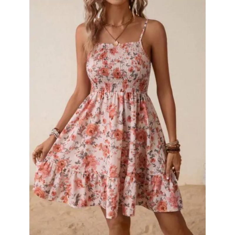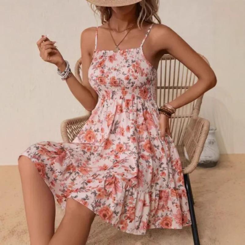 Женское платье без бретелек с цветочным принтом, весна/лето