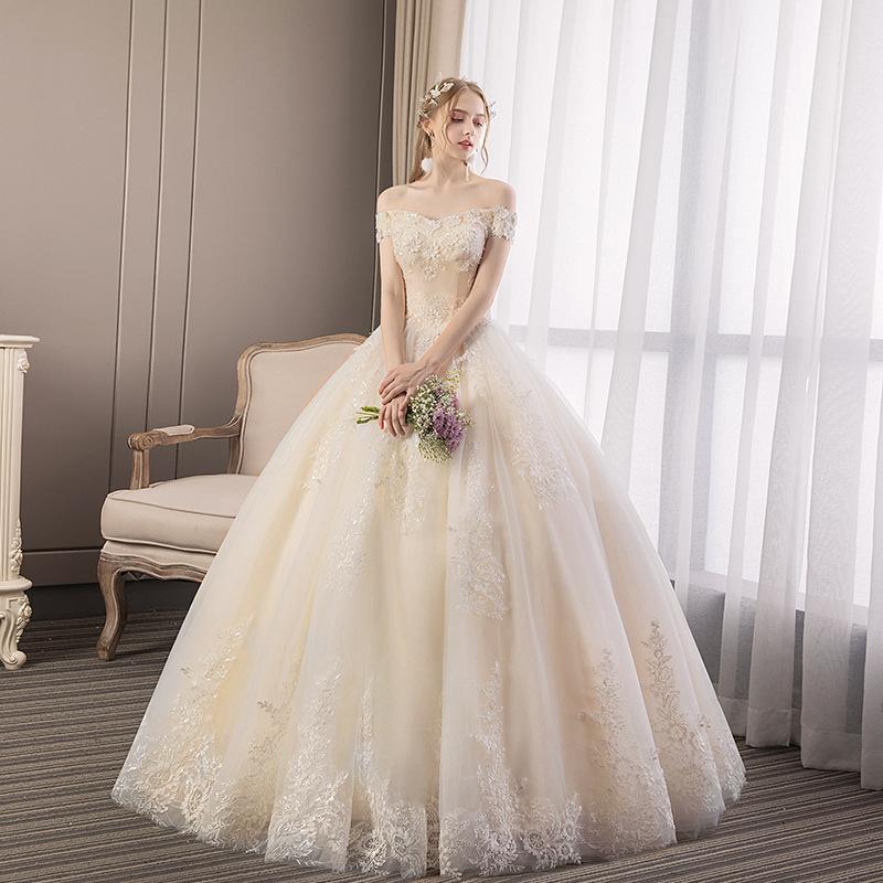 Свадебное платье женское новое платье невесты из основной пряжи со шлейфом на одно плечо принцесса ретро королевский фантазийный французский стиль — купить товар онлайн с бесплатной доставкой по всему миру!