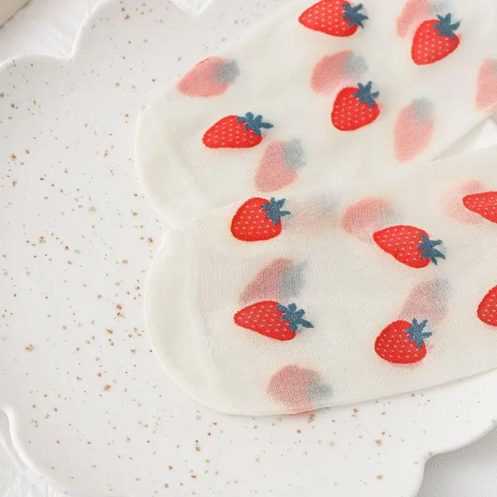 Avocado Strawberry Glass Silk Ruffle Socks Cherry Fruit Mesh Tulle Mid Tube Socks Girl