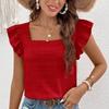 Женская футболка Летняя Повседневная с коротким рукавом Весенне-летняя Новинка Квадратный вырез Рубашка с рюшами Топ