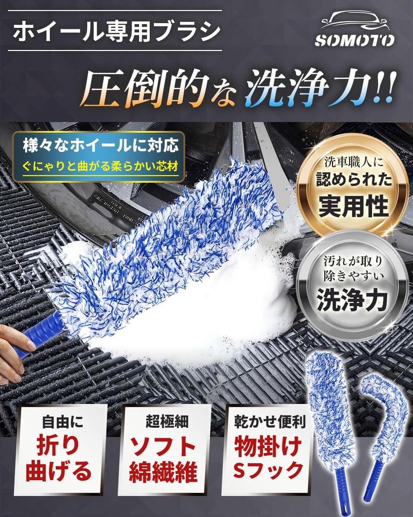 ``Использован мягкий микроволоконный материал'' Мягкий микроволоконный материал бережно очищает ваш автомобиль, не повреждая его.. Щетка для мытья колес автомобиля SOMOTO разработана таким образом, чтобы минимизировать мелкие царапины, которые возникают во время мойки автомобиля, поэтому ее можно использовать со спокойной душой, особенно владельцам автомобилей класса люкс.. Кроме того, благодаря свойствам материала, он прочно впитывает грязь и легко удаляет трудноудаляемые загрязнения, позволяя вам наслаждаться мытьем автомобиля без стресса.