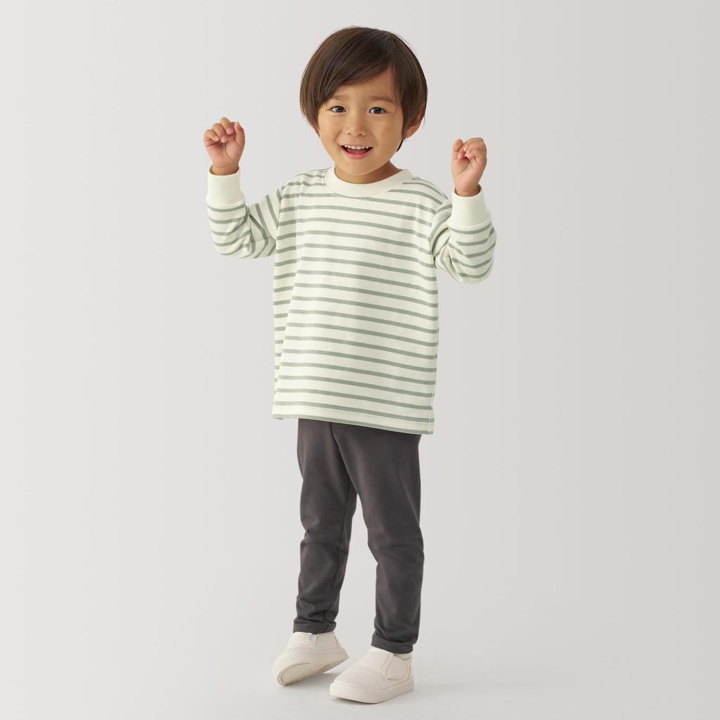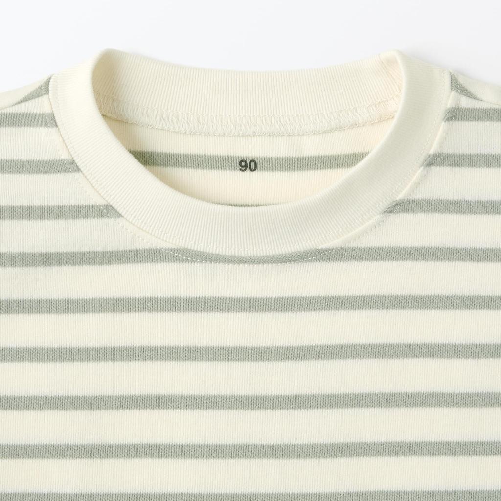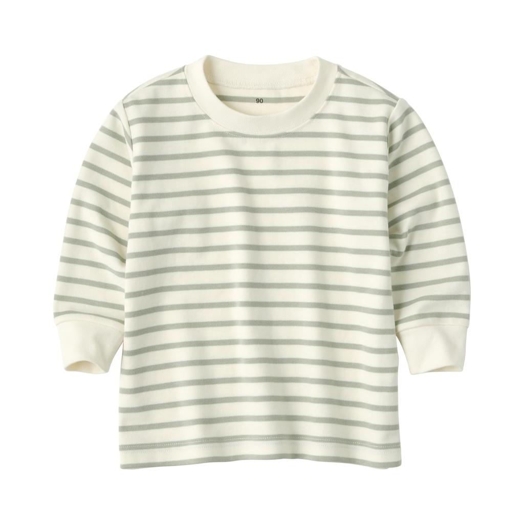 Футболка MUJI Baby Smooth Brushed Crew Neck Long Sleeve Unisex Baby CC23SA4A Light Green Border Baby 80