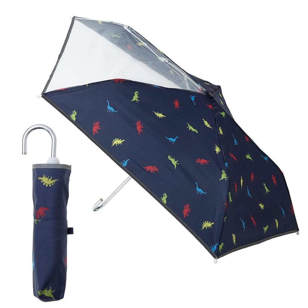 Estaa Детский складной зонт с прозрачным окном, ветрозащитный зонт для детей и мальчиков, светоотражающая лента с изображением динозавра, светоотражающие спицы, защищающие пальцы, 50 см